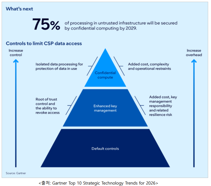 - 가트너는 2029 년까지 신뢰할 수 없는 인프라에서 처리되는 데이터의 75%가 컨피덴셜 컴퓨팅을 통해